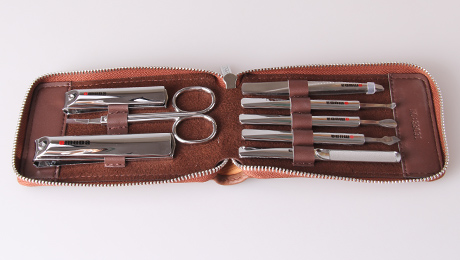 產品規格:129mm*76mm 產品重量:238g 天地盒規格:140mm*90mm*28mm 材質:PU皮+420不銹鋼+碳鋼+鋅合金 配件:大平口指甲鉗、美容剪、小平口指甲鉗、眉夾、指甲銼、刮刀、竹殼推整器、耳挖 套裝顏色:啡色